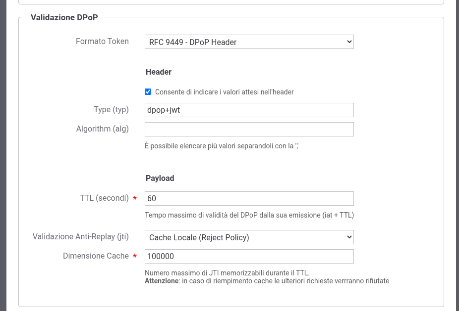 Fig. 154 Token Policy PDND-DPoP: configurazione