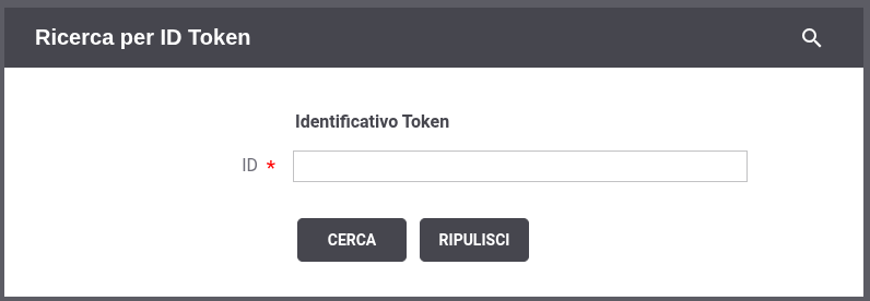 La modalità ID Token consente di effettuare ricerche di transazioni specificando un determinato identificativo di token utilizzato all’interno dell’authorization bearer nel campo jti. La maschera di ricerca si compone dei seguenti campi (Fig. 546):
