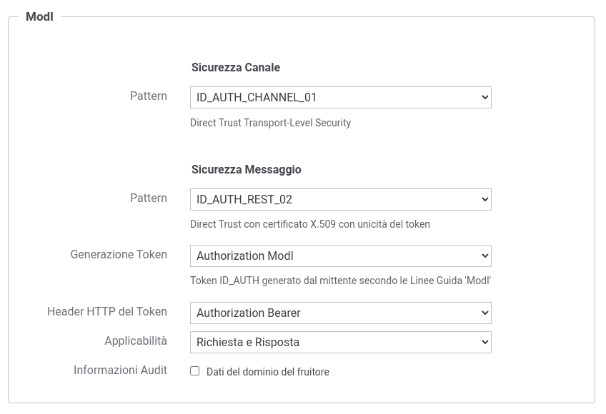 selezionare una “Generazione Token” di tipo “Authorization ModI” per far si che il Token “ID_AUTH” sia generato dalla parte mittente.
