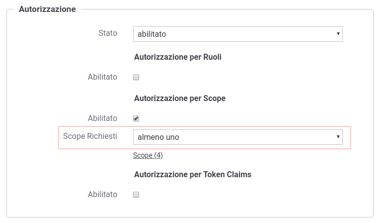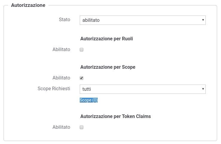 Autorizzazione per Scope - Stato: abilitato